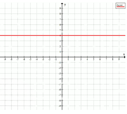б) Уравнение \( y = 4 \) задаёт горизонтальную прямую, которая проходит через точку на оси \( y \), где \( y = 4 \). Эта прямая параллельна оси \( x \), так как для всех точек на ней значение \( y \) постоянно и равно 4, а \( x \) может быть любым.