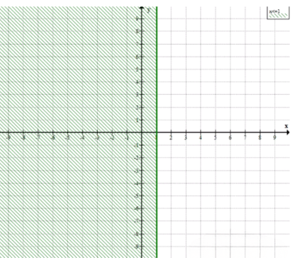 в) Неравенство \( x \leq 1 \) задаёт область на плоскости, которая находится слева от вертикальной прямой \( x = 1 \), включая саму эту прямую. То есть все точки, у которых координата \( x \) меньше или равна 1, принадлежат этой области.