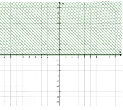 г) Неравенство \( y \geq 0 \) задаёт область на плоскости, которая находится выше оси \( x \) (где \( y = 0 \)), включая саму ось. Это значит, что все точки с неотрицательной координатой \( y \) входят в эту область.
