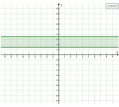 д) Двойное неравенство \( 1{,}5 \leq y \leq 3{,}5 \) задаёт горизонтальную полосу на плоскости, ограниченную двумя параллельными прямыми \( y = 1{,}5 \) и \( y = 3{,}5 \), включая сами эти прямые. Все точки с координатой \( y \) между 1,5 и 3,5, включая границы, принадлежат этой полосе.