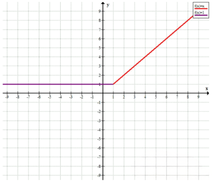 а) \( y = \begin{cases} x, & \text{при } x \geq 1 \\ 1, & \text{при } x < 1 \end{cases} \)