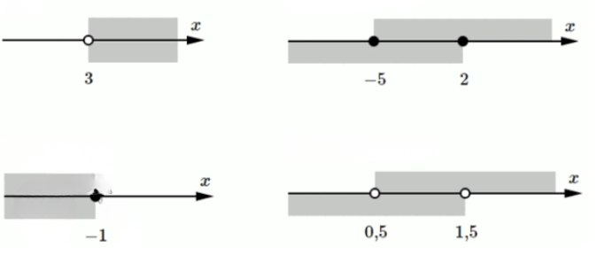 а) \( x > 3 \); б) \( x \leq -1 \); в) \(-5 < x < 2\); г) \(0,5 < x < 1,5\).
