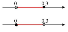 То есть, x может быть любым значением от 0 (но не включая 0) до 0,3, и 0,3 включается.