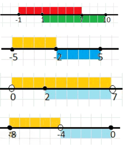 Изобразите на координатной прямой указанные промежутки (используйте для этого разные цветные карандаши). Найдите объединение и пересечение этих промежутков: