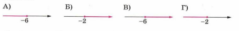 В пункте В записано \(x \ge -6\), что значит все числа от \(-6\) и больше. На рисунке это соответствует промежутку (3), где стрелка направлена вправо от \(-6\), включая эту точку. В пункте Г указано \(x \le -2\), что включает все числа меньше или равные \(-2\), что совпадает с промежутком (2) на рисунке, где стрелка направлена влево от \(-2\), включая точку. Таким образом, правильное соответствие: А – 4, Б – 1, В – 3, Г – 2.