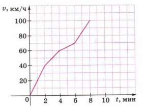 4) от 6 до 8 мин – изменение скорости 30 км/ч.