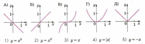 В) \(y = x^3\) (1) – кубическая функция.