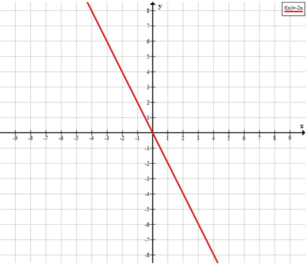 в) Уравнение y = -2x. Это линейная функция с угловым коэффициентом -2. При увеличении x на 1 значение y уменьшается на 2. График — прямая через начало координат, убывающая слева направо. Например, при x=2 имеем y = -4.