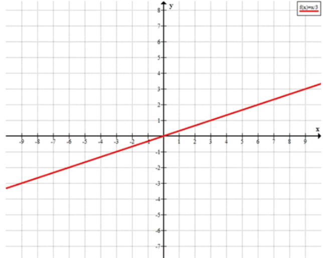 д) Уравнение . Это линейная функция с угловым коэффициентом . При увеличении x на 1 значение y увеличивается на треть. График — прямая через начало координат с пологим наклоном вверх. Например, при x=6 имеем y = 2.