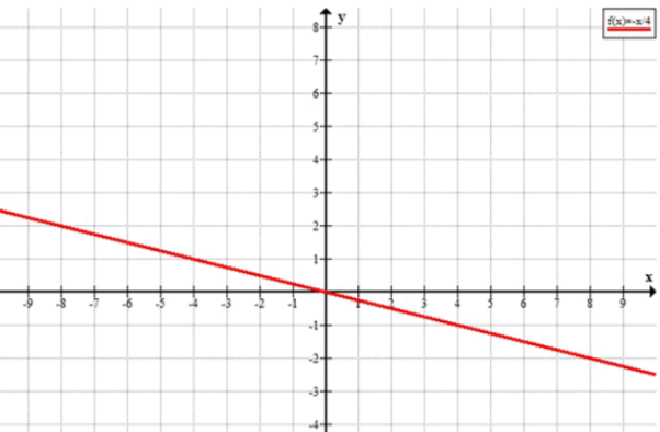 е) Уравнение . Это линейная функция с угловым коэффициентом При увеличении x на 1 значение y уменьшается на 0,25. График — прямая через начало координат с очень пологим наклоном вниз. Например, при x=8 имеем y = -2.