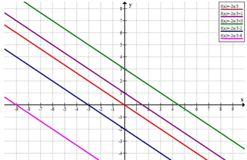 - Все прямые имеют одинаковый угловой коэффициент , что означает, что их наклон одинаков, и все они будут иметь одинаковый угол наклона.