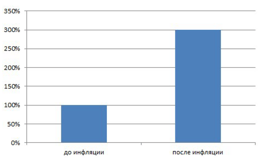 100 % (исходная цена) + 200 % (увеличение) = 300 % от начальной стоимости.