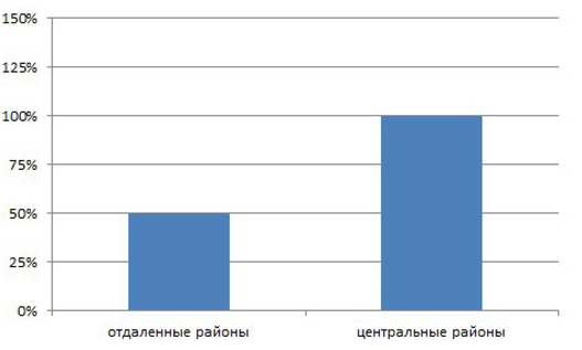 То есть, квартплата в отдалённых районах на 50 % меньше, чем в центральных.