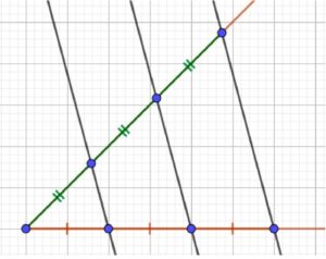 Эти две прямые, проведённые через соответствующие равные отрезки на сторонах угла, будут параллельны.