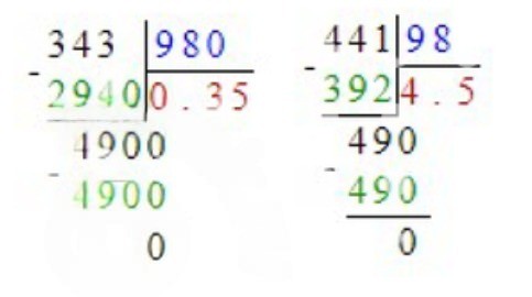 б) Цена некоторого товара 98 р. за 1 кг. Сколько купили этого товара, если за покупку заплатили 34,3 р.? 441 р.?